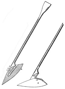 Silas Barker Explosive Harpoon. Length is 31-1/4", head is 3-3/4" long, 1" thick. In 1865, Silas Barker of Hartford, Connecticut, patented another explosive hand-darted harpoon (U.S. Patent No. 46,437, Feb. 21, 1865). This harpoon propelled an explosive head deeper into the